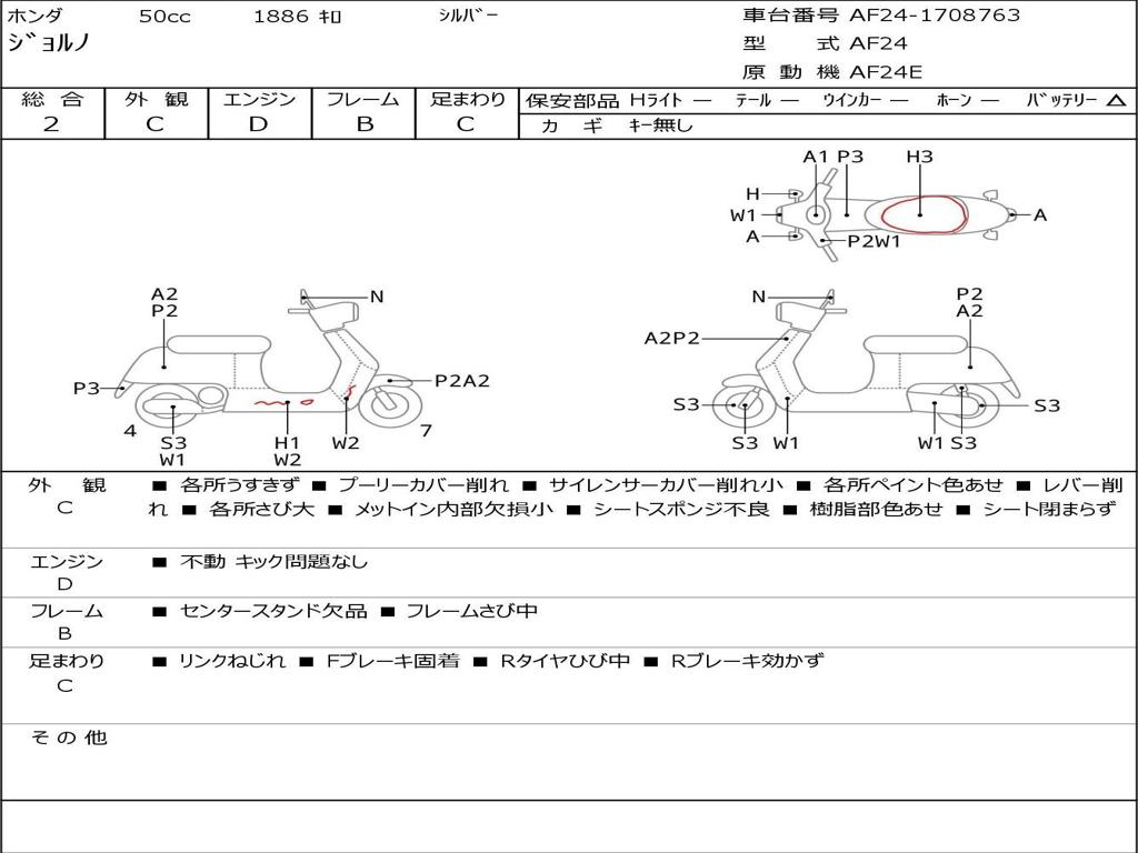 | Номер рамы / VIN | AF24-1708763 |