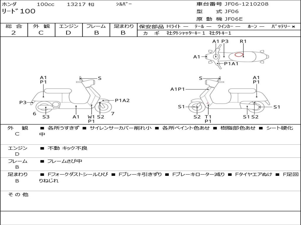 | Номер рамы / VIN | JF06-1210208 |