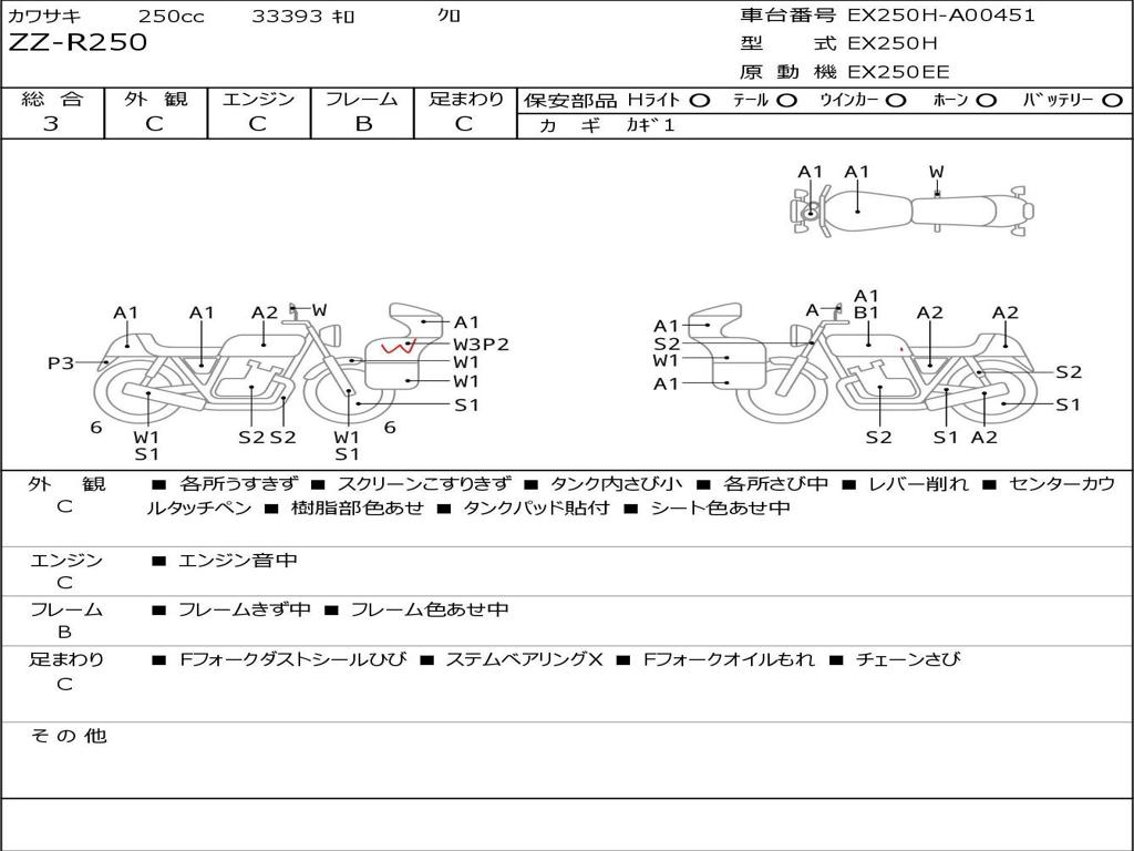 | Номер рамы / VIN | EX250H-A00451 |