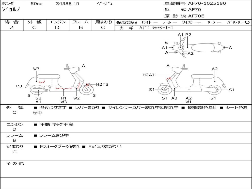 | Номер рамы / VIN | AF70-1025180 |