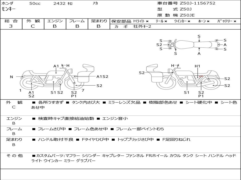 | Номер рамы / VIN | Z50J-1156752 |