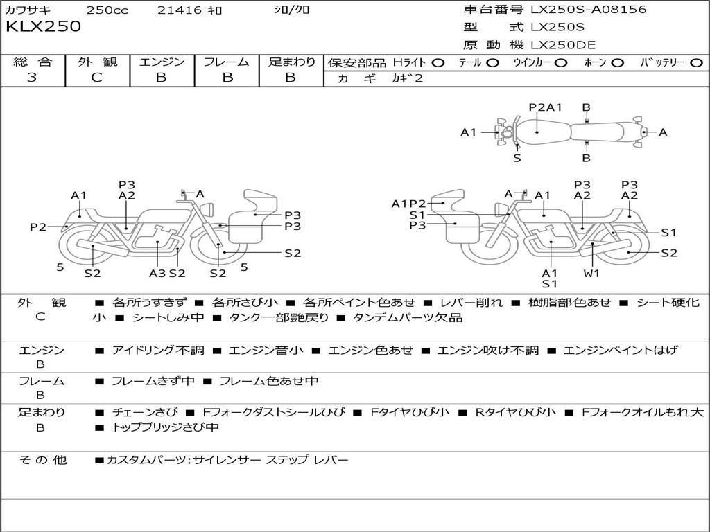 | Номер рамы / VIN | LX250S-A08156 |