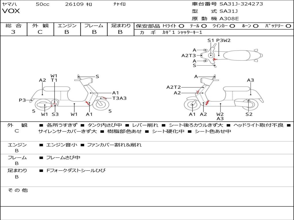 | Номер рамы / VIN | SA31J-324273 |