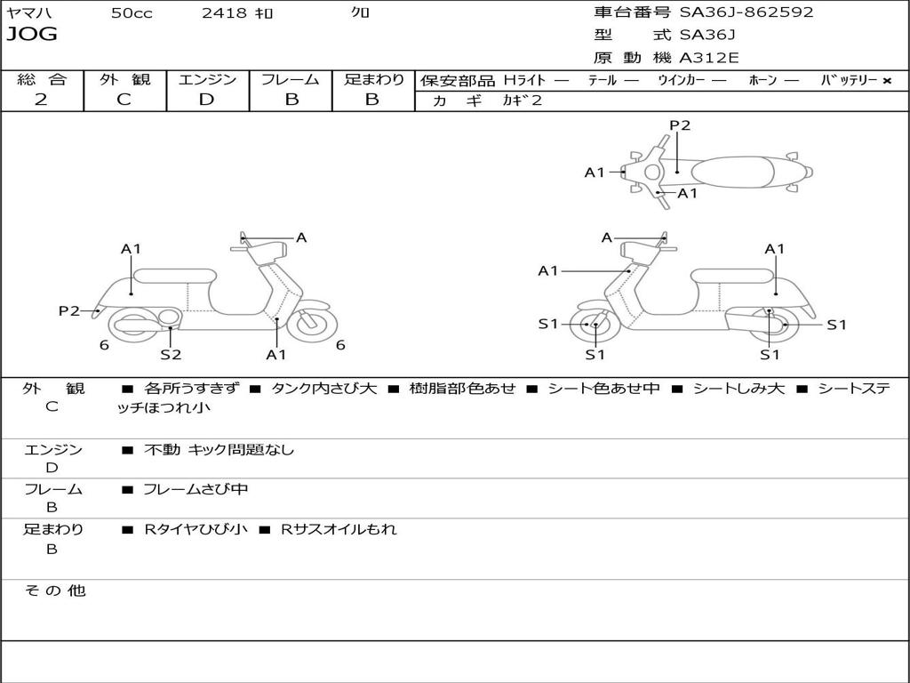 | Номер рамы / VIN | SA36J-862592 |