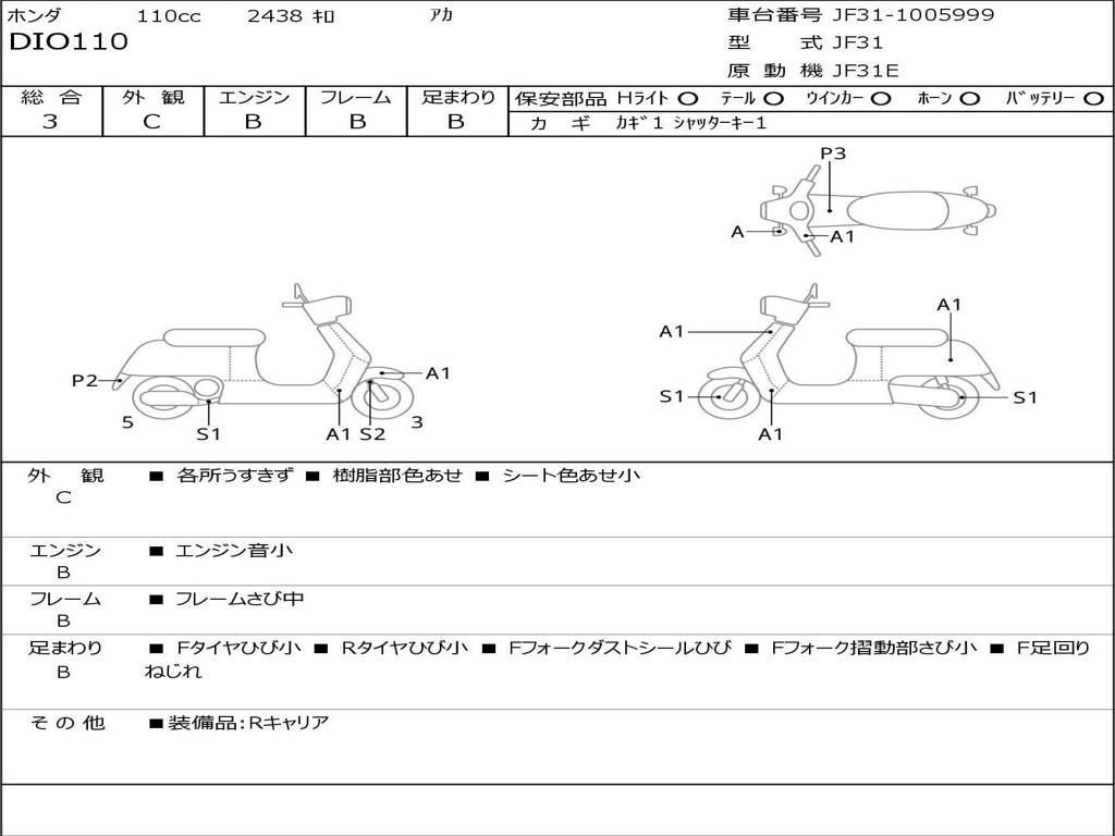 | Номер рамы / VIN | JF31-1005999 |