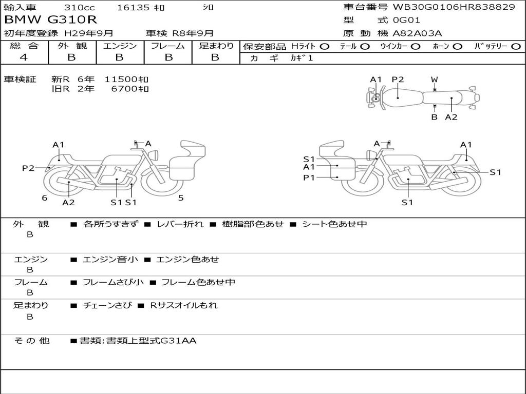 | Номер рамы / VIN | WB30G0106HR838829 |