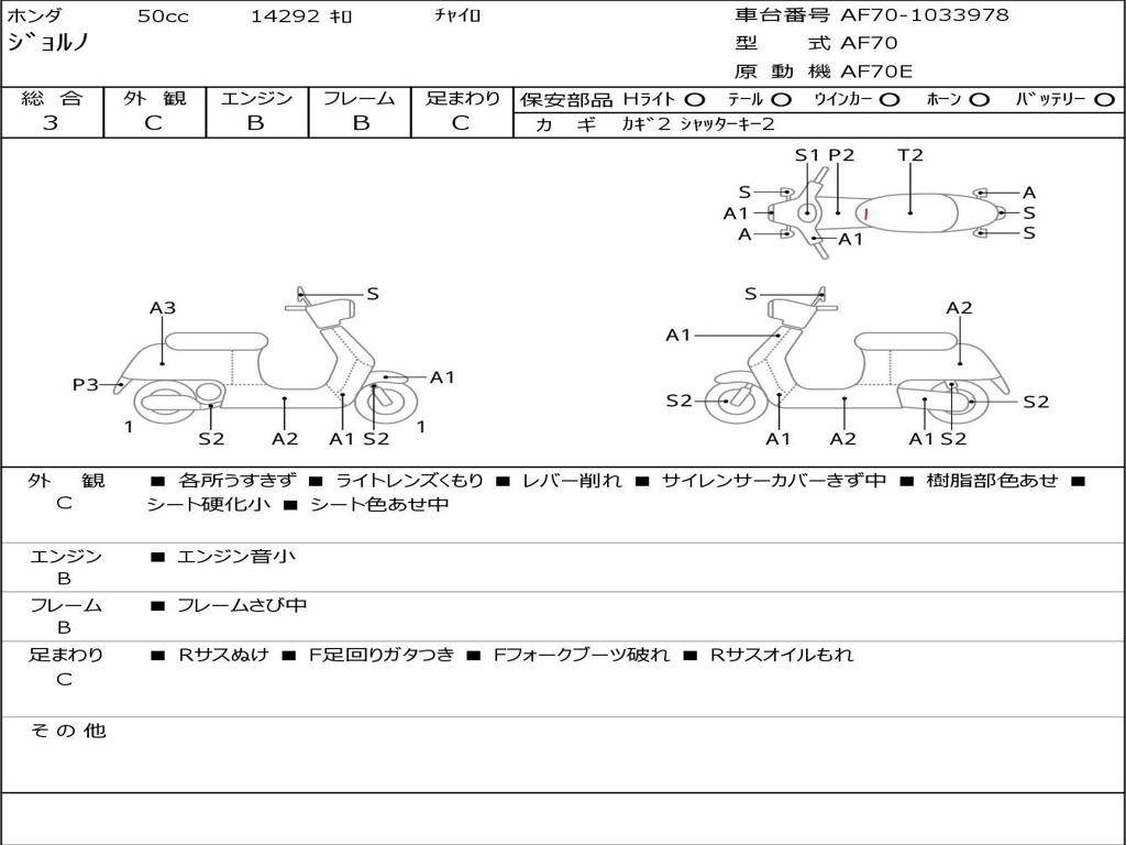 | Номер рамы / VIN | AF70-1033978 |