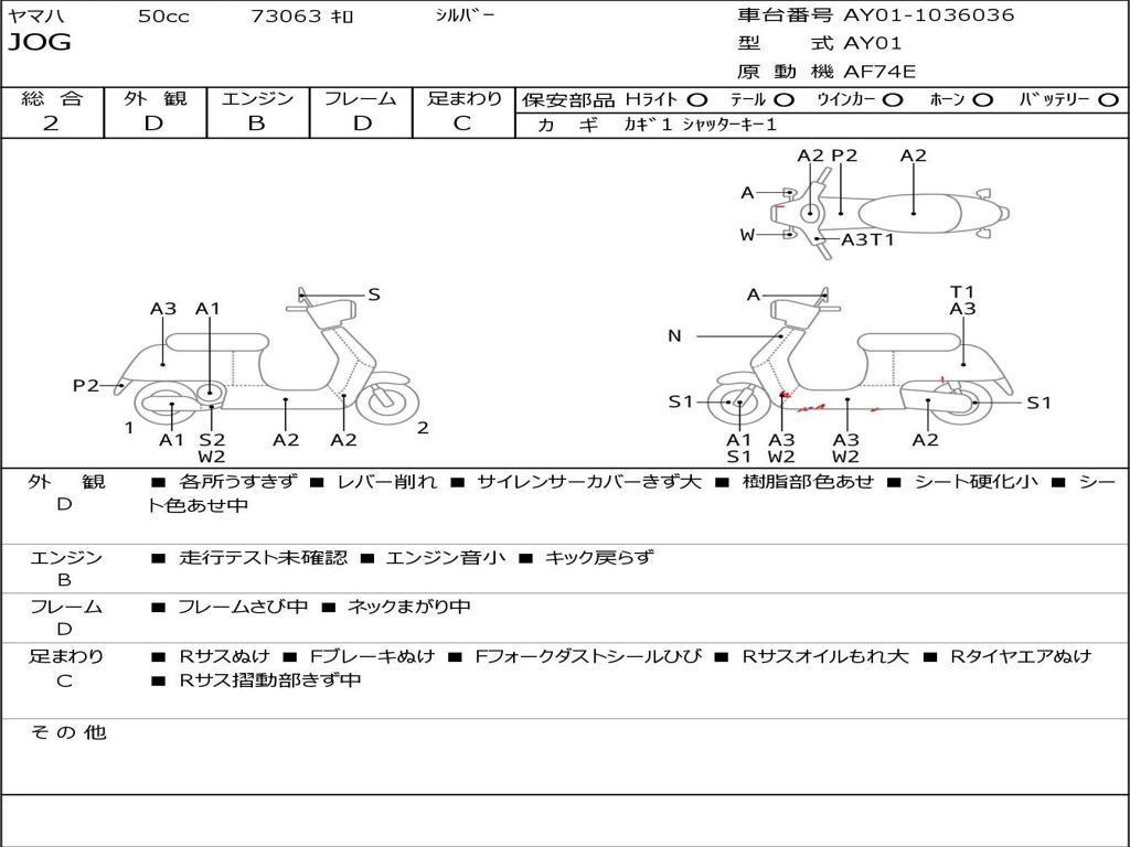 | Номер рамы / VIN | AY01-1036036 |