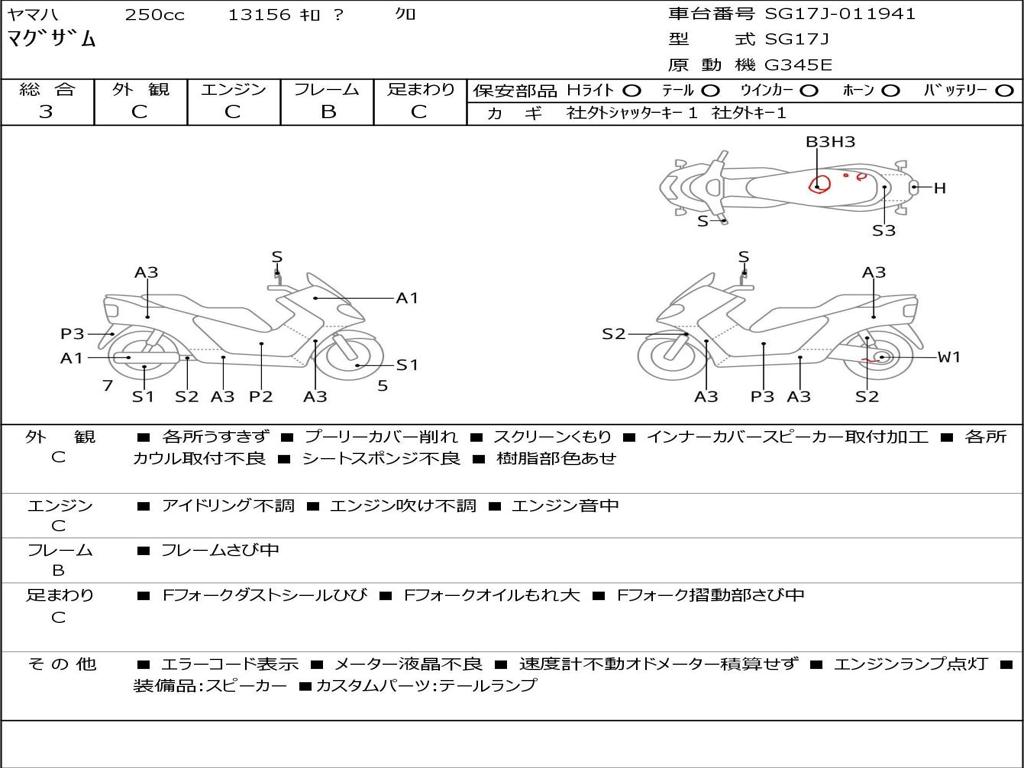 | Номер рамы / VIN | SG17J-011941 |