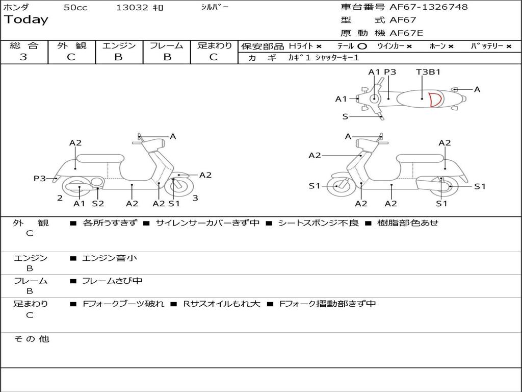 | Номер рамы / VIN | AF67-1326748 |