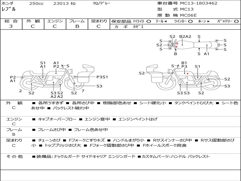 | Номер рамы / VIN | MC13-1803462 |