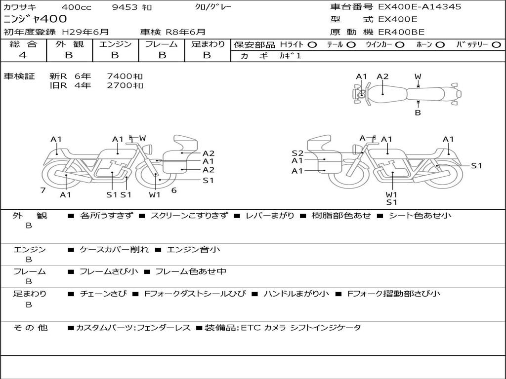 | Номер рамы / VIN | EX400E-A14345 |