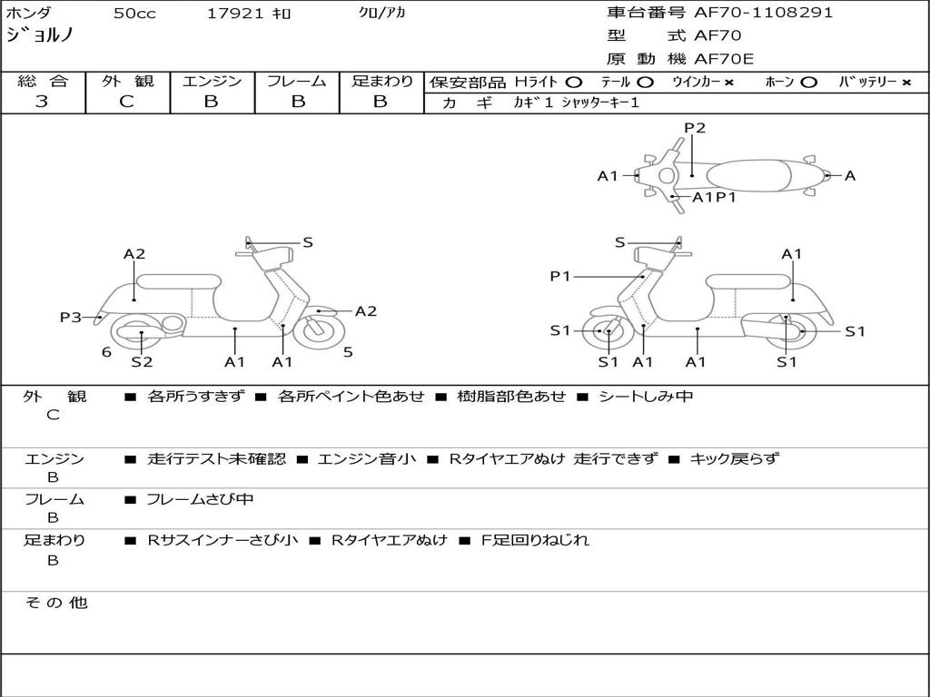 | Номер рамы / VIN | AF70-1108291 |