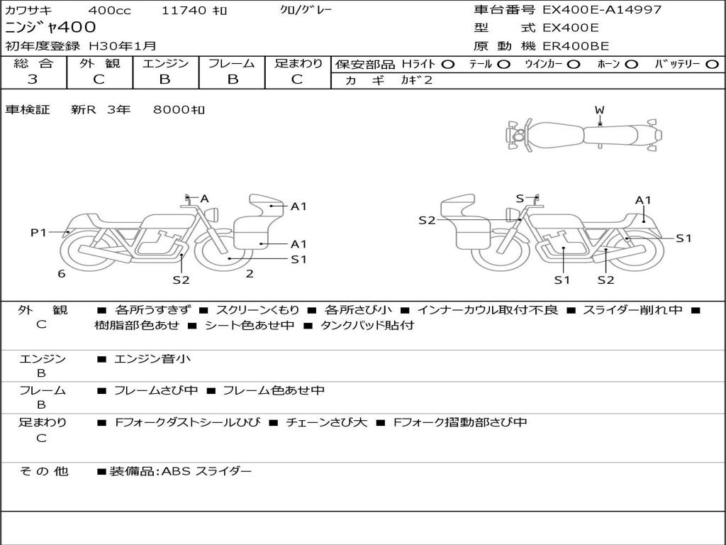 | Номер рамы / VIN | EX400E-A14997 |