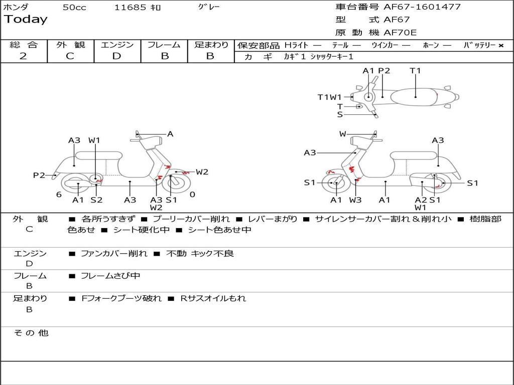 | Номер рамы / VIN | AF67-1601477 |