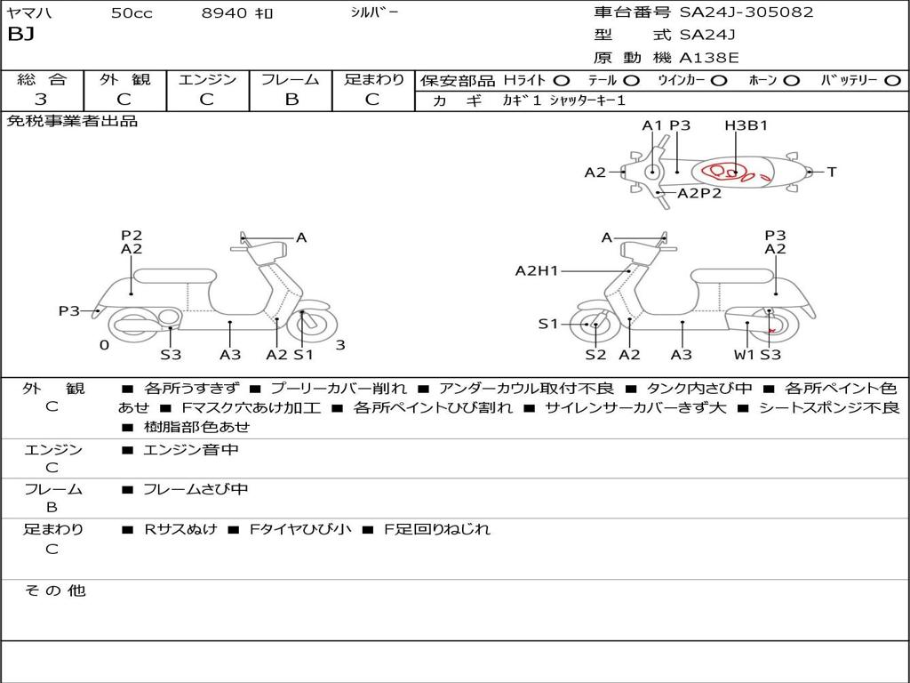 | Номер рамы / VIN | SA24J-305082 |