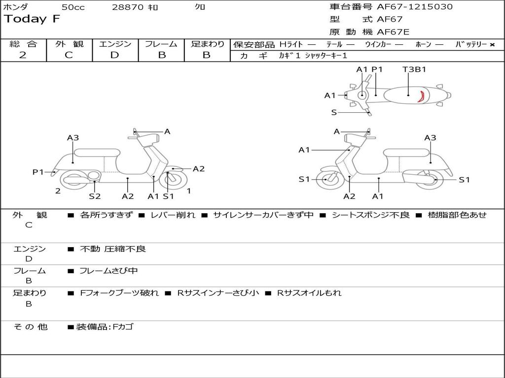 | Номер рамы / VIN | AF67-1215030 |