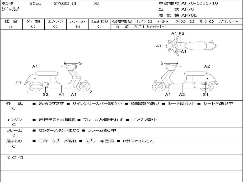 | Номер рамы / VIN | AF70-1001710 |