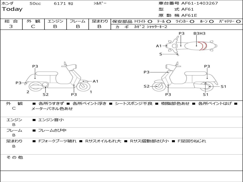 | Номер рамы / VIN | AF61-1403267 |