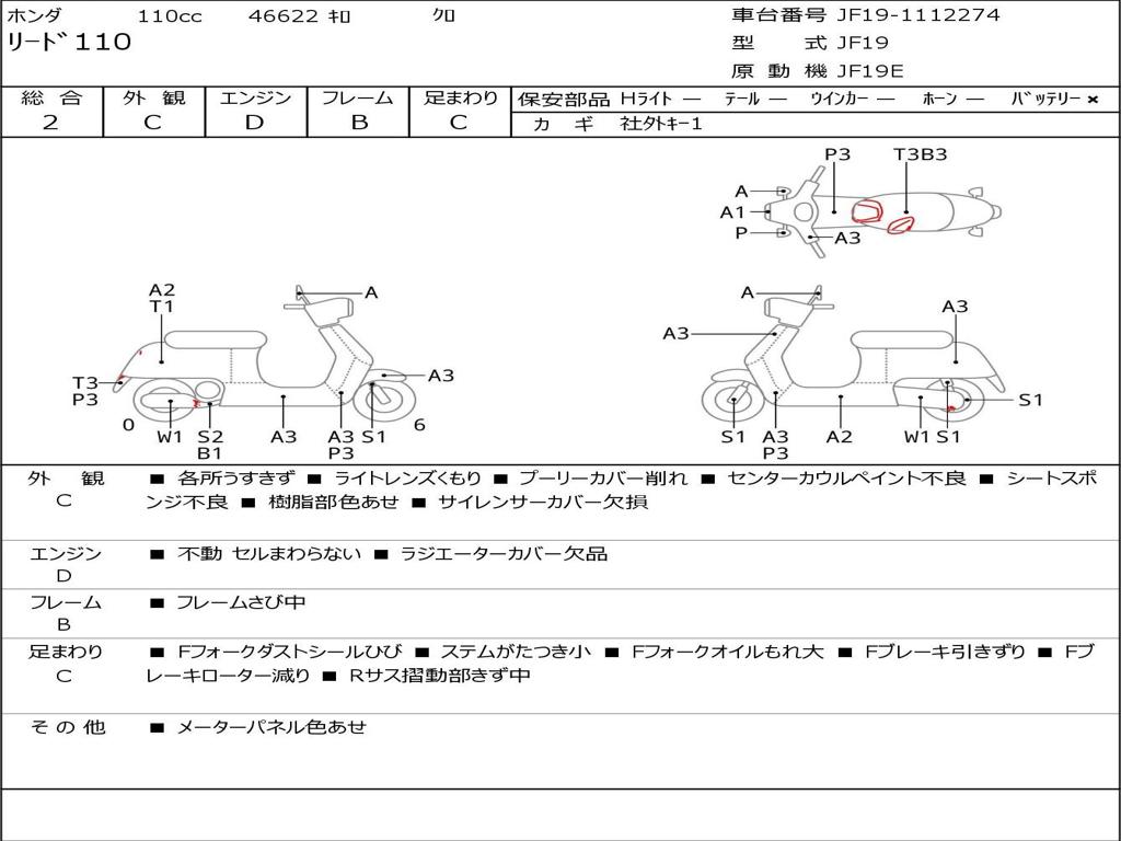 | Номер рамы / VIN | JF19-1112274 |
