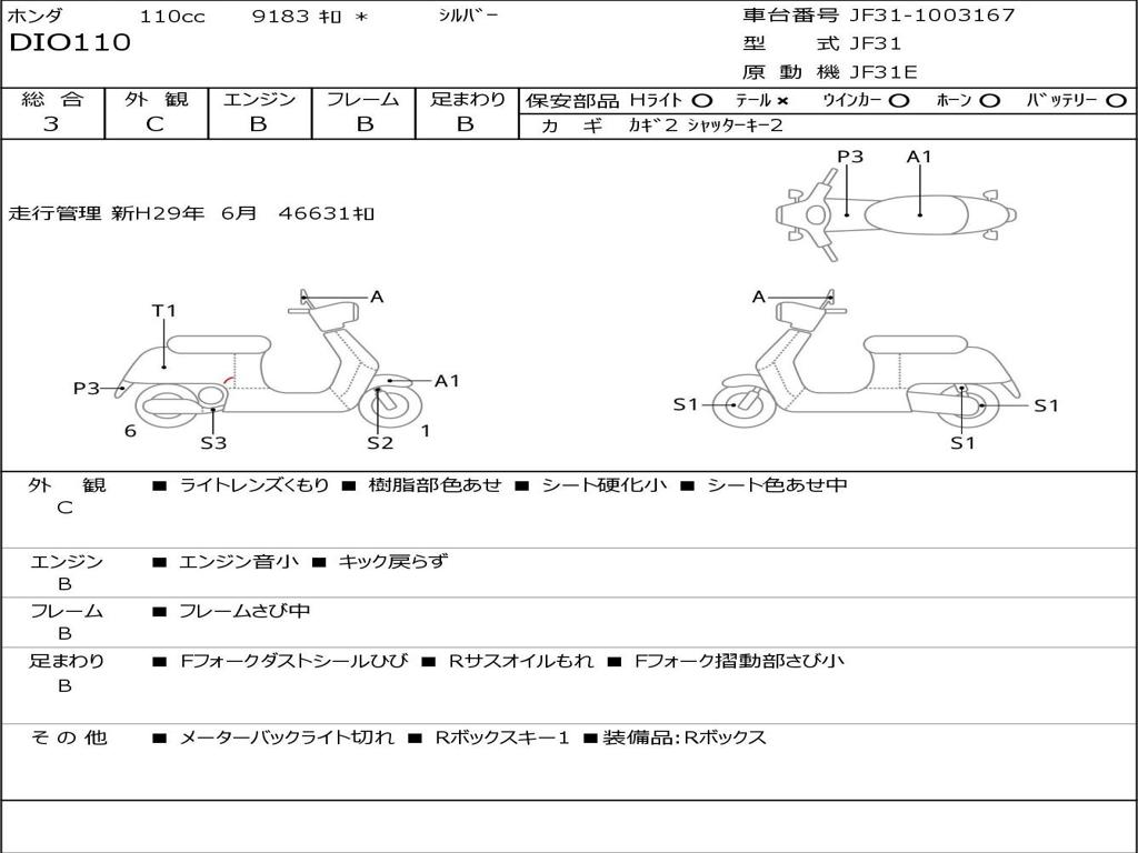 | Номер рамы / VIN | JF31-1003167 |