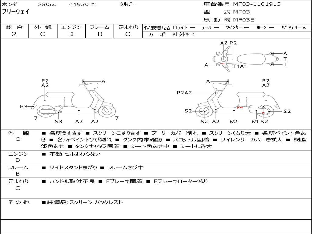 | Номер рамы / VIN | MF03-1101915 |