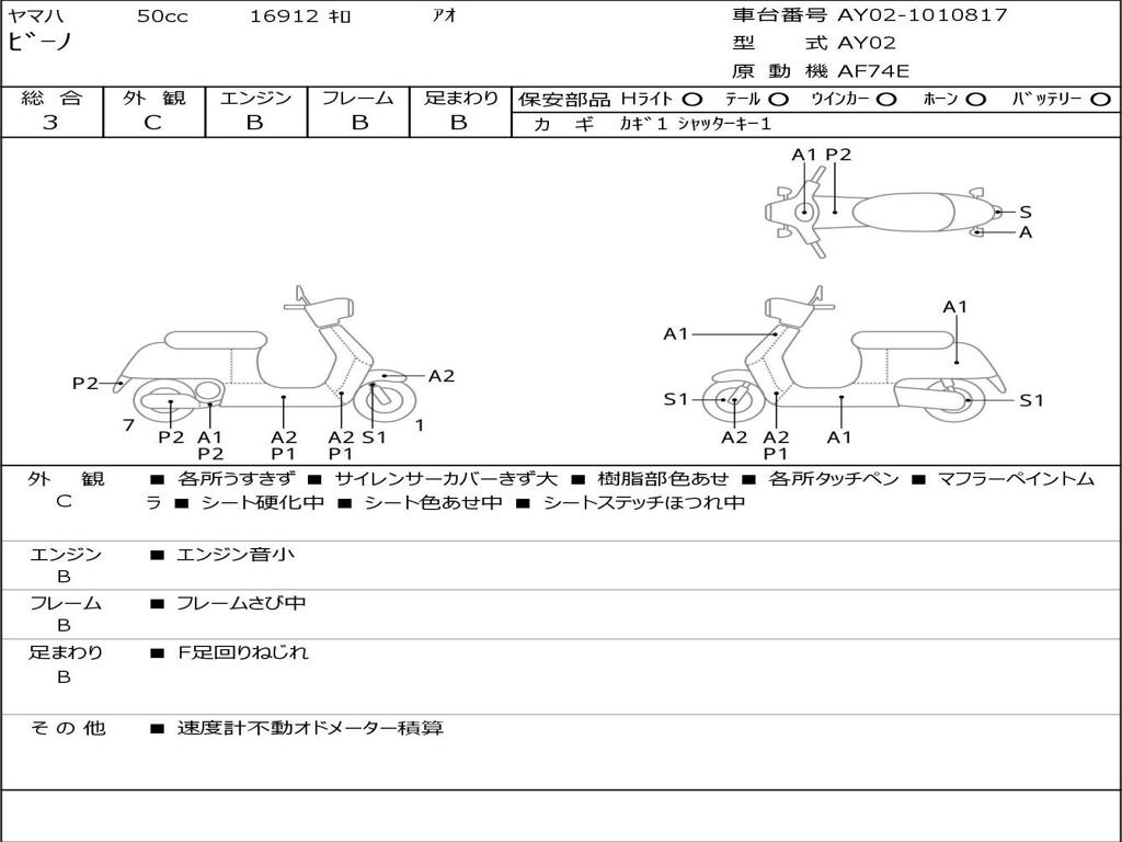 | Номер рамы / VIN | AY02-1010817 |