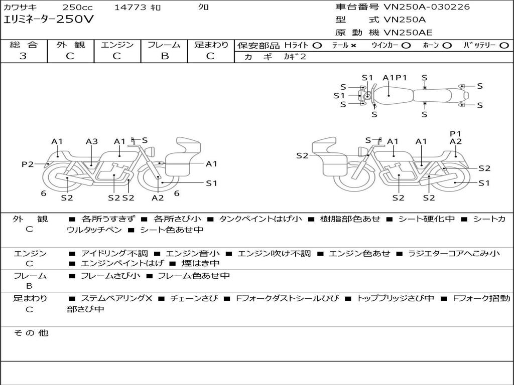 | Номер рамы / VIN | VN250A-030226 |