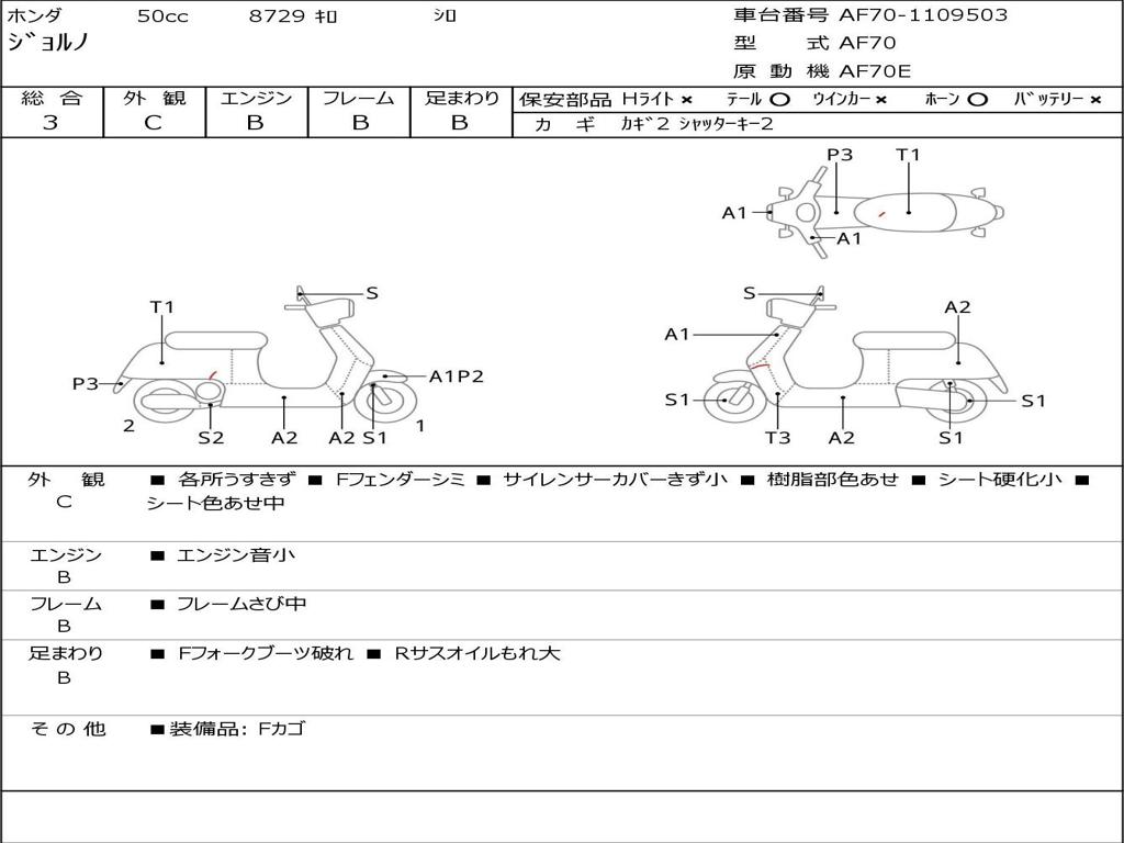 | Номер рамы / VIN | AF70-1109503 |