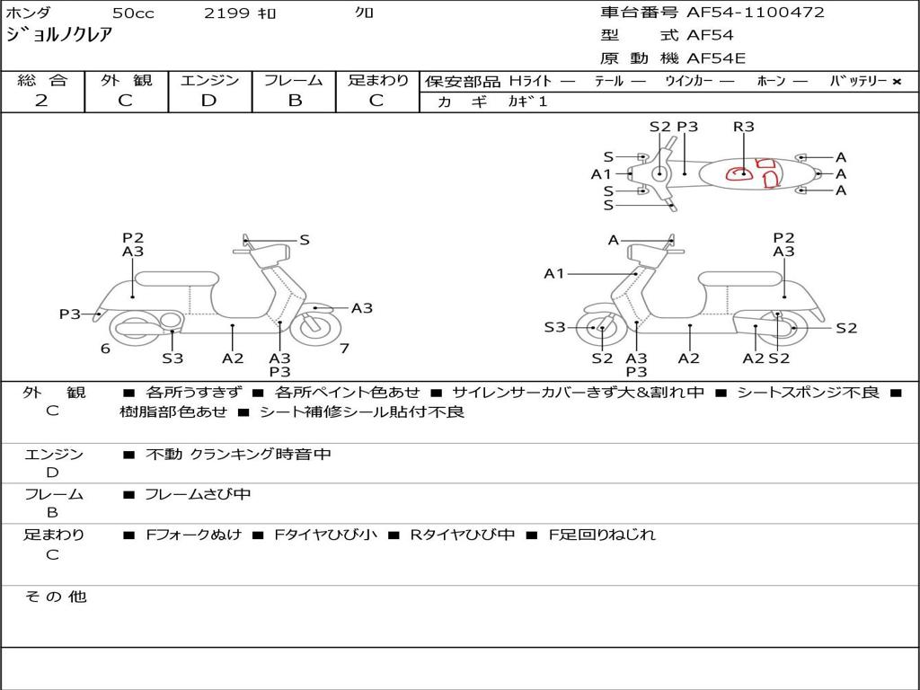 | Номер рамы / VIN | AF54-1100472 |