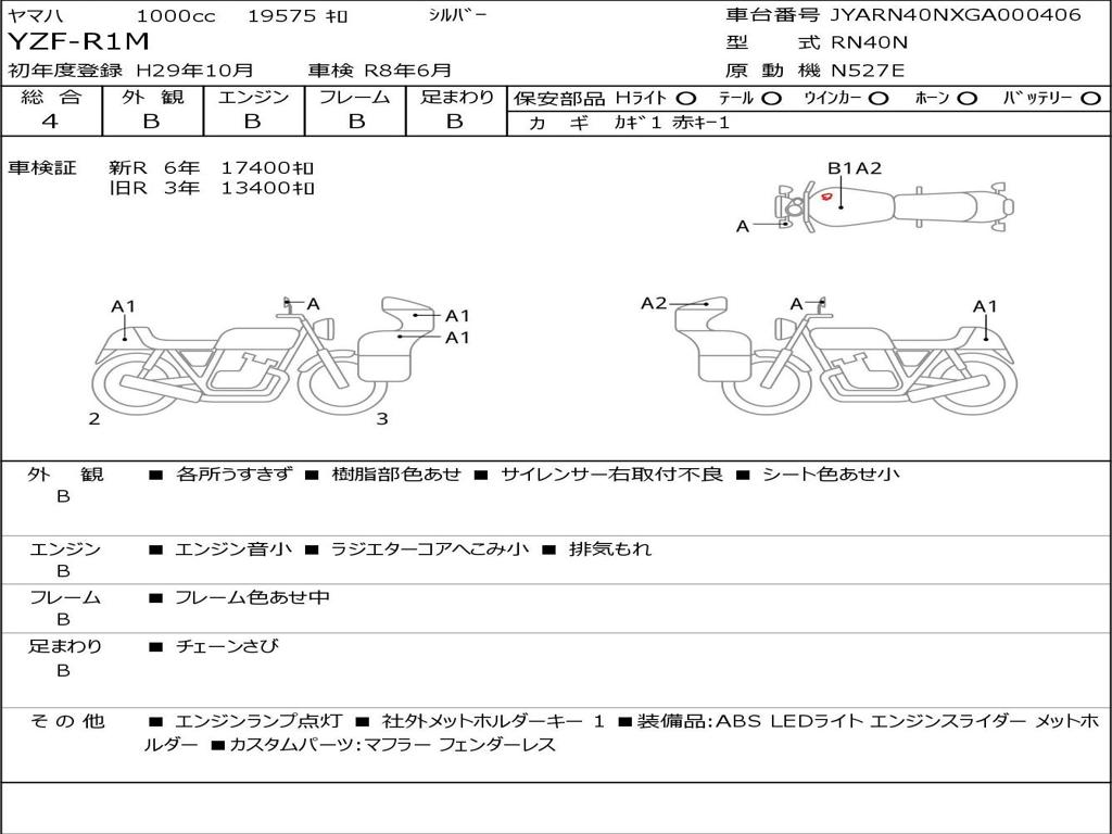 | Номер рамы / VIN | JYARN40NXGA000406 |