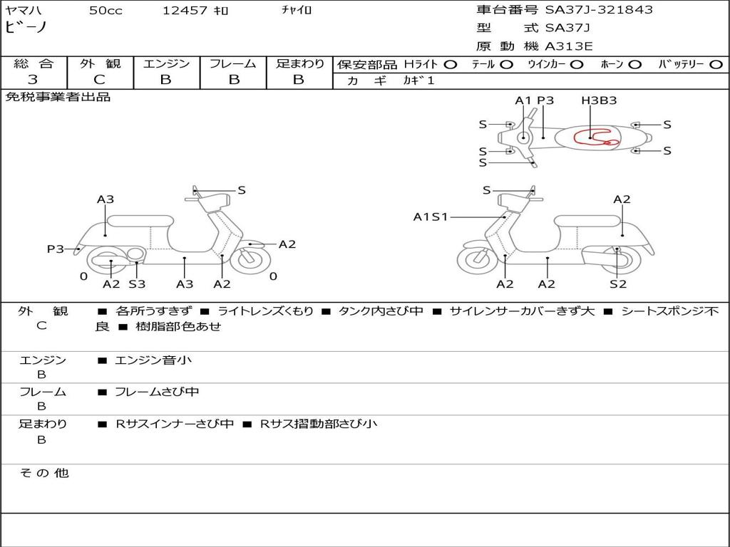 | Номер рамы / VIN | SA37J-321843 |