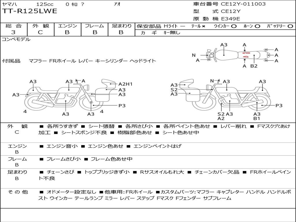 | Номер рамы / VIN | CE12Y-011003 |