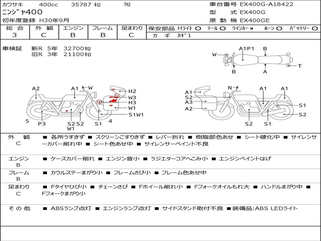 | Номер рамы / VIN | EX400G-A18422 |