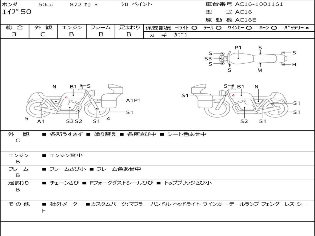 | Номер рамы / VIN | AC16-1001161 |