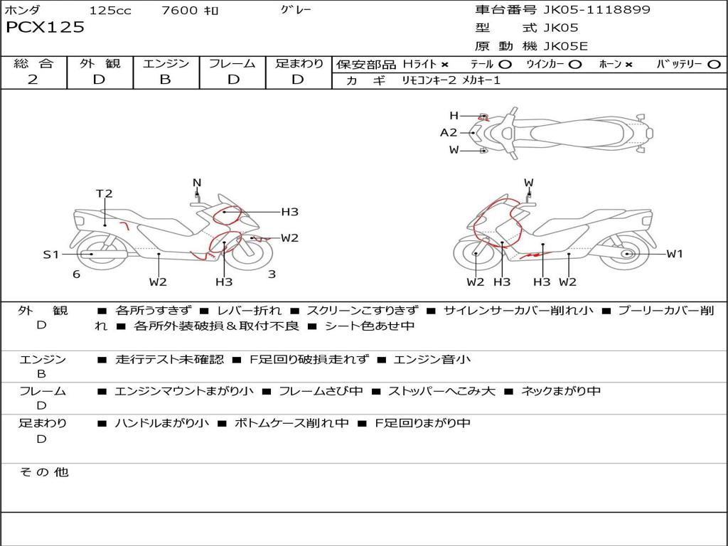 | Номер рамы / VIN | JK05-1118899 |