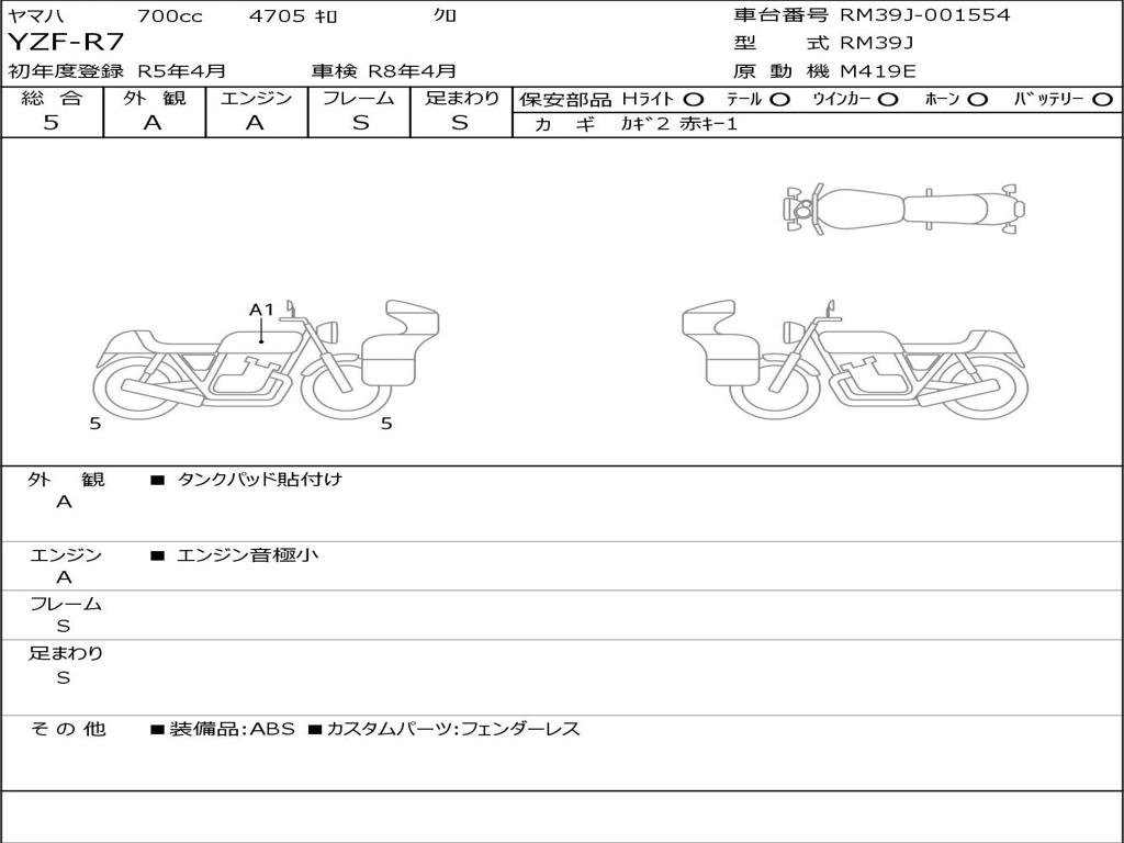 | Номер рамы / VIN | RM39J-001554 |