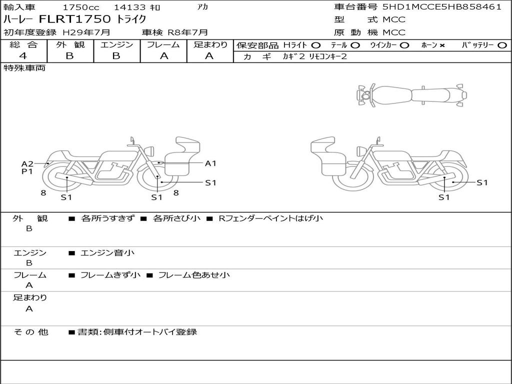 | Номер рамы / VIN | 5HD1MCCE5HB858461 |