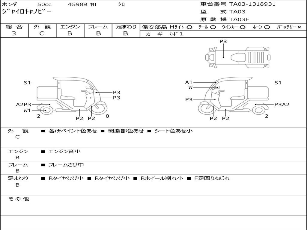 | Номер рамы / VIN | TA03-1318931 |