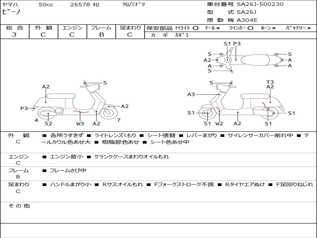 | Номер рамы / VIN | SA26J-500230 |
