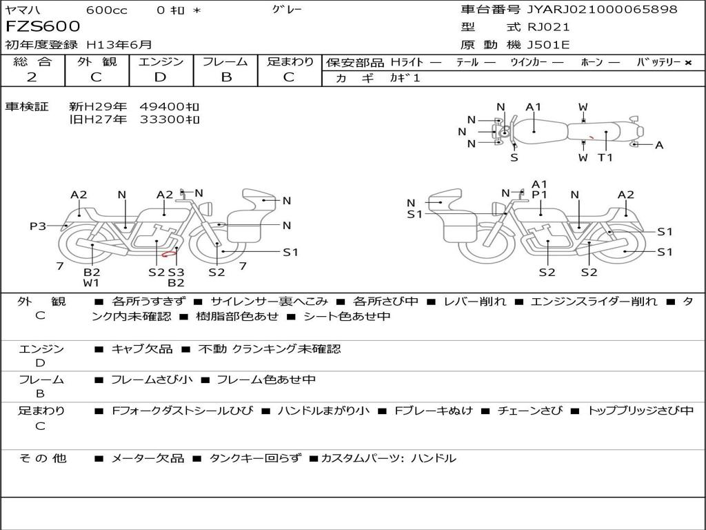 | Номер рамы / VIN | JYARJ021000065898 |