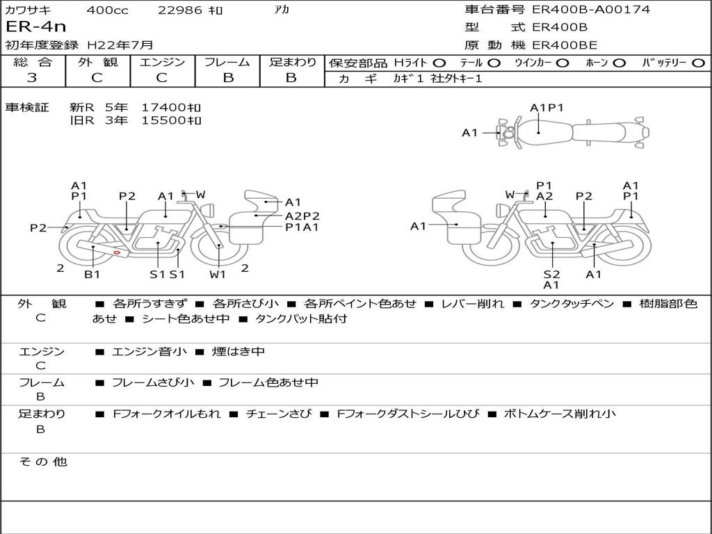 | Номер рамы / VIN | ER400B-A00174 |