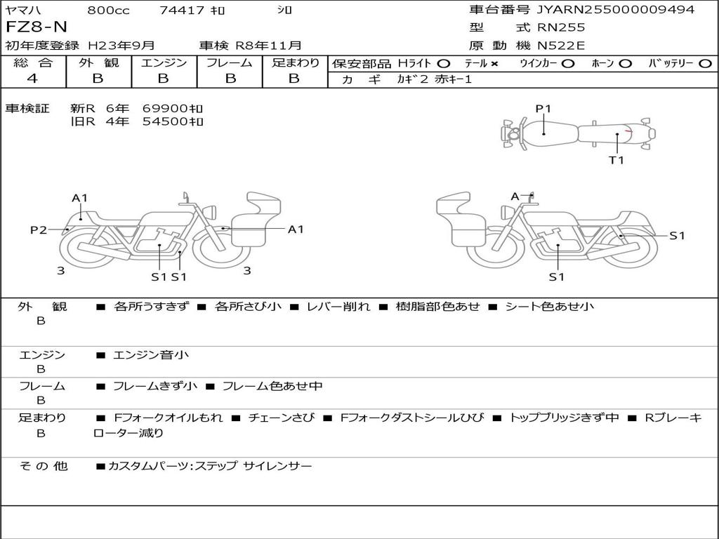 | Номер рамы / VIN | JYARN255000009494 |