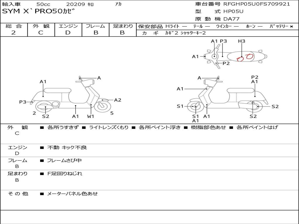 | Номер рамы / VIN | RFGHP05U0FS709921 |