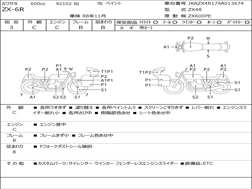 | Номер рамы / VIN | JKAZX4R179A013674 |