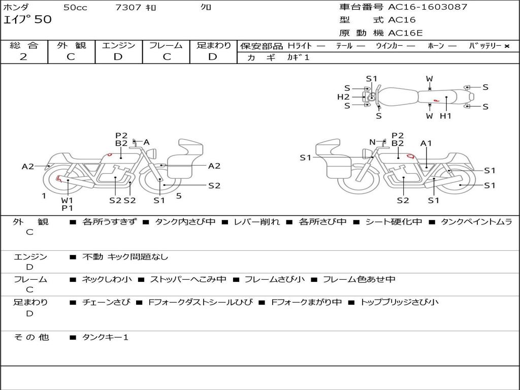 | Номер рамы / VIN | AC16-1603087 |