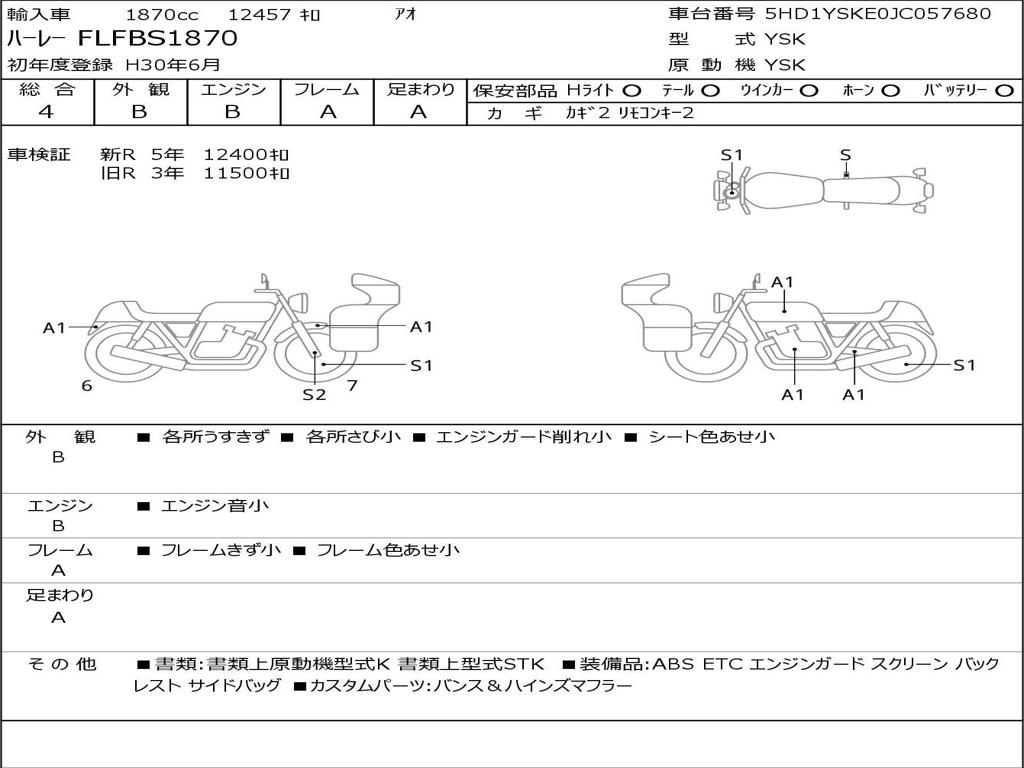 | Номер рамы / VIN | 5HD1YSKE0JC057680 |
