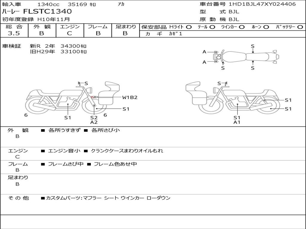 | Номер рамы / VIN | 1HD1BJL47XY024406 |