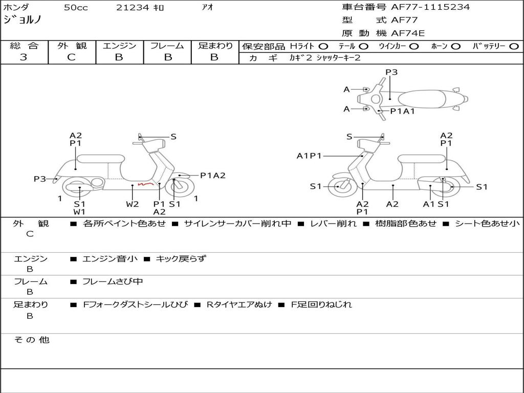 | Номер рамы / VIN | AF77-1115234 |