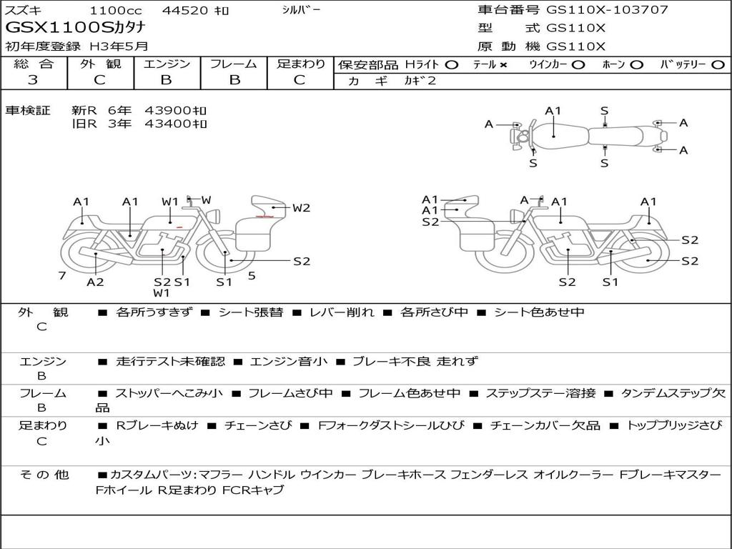 | Номер рамы / VIN | GS110X-103707 |
